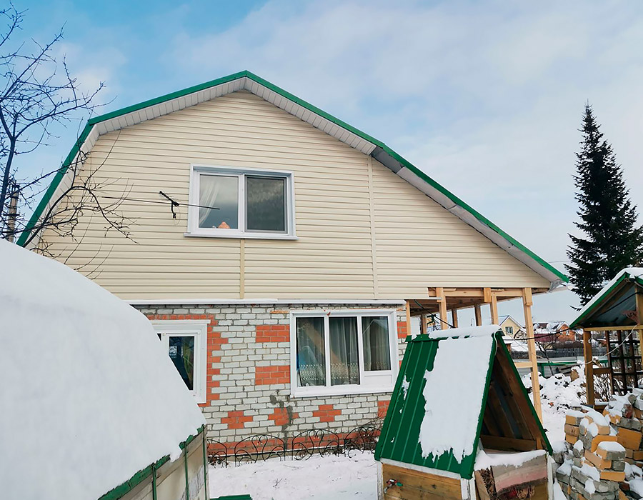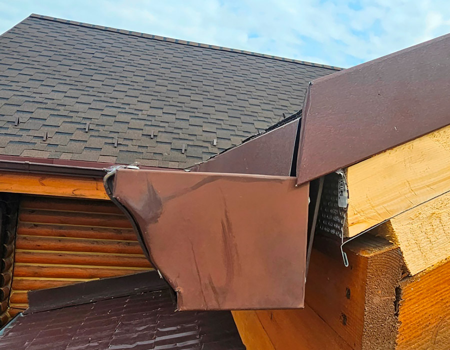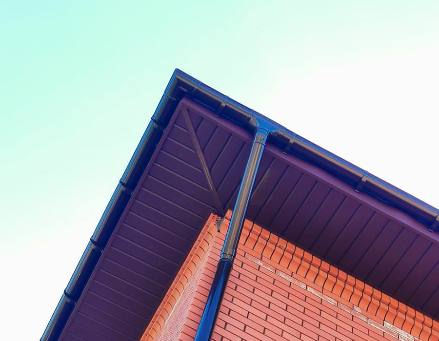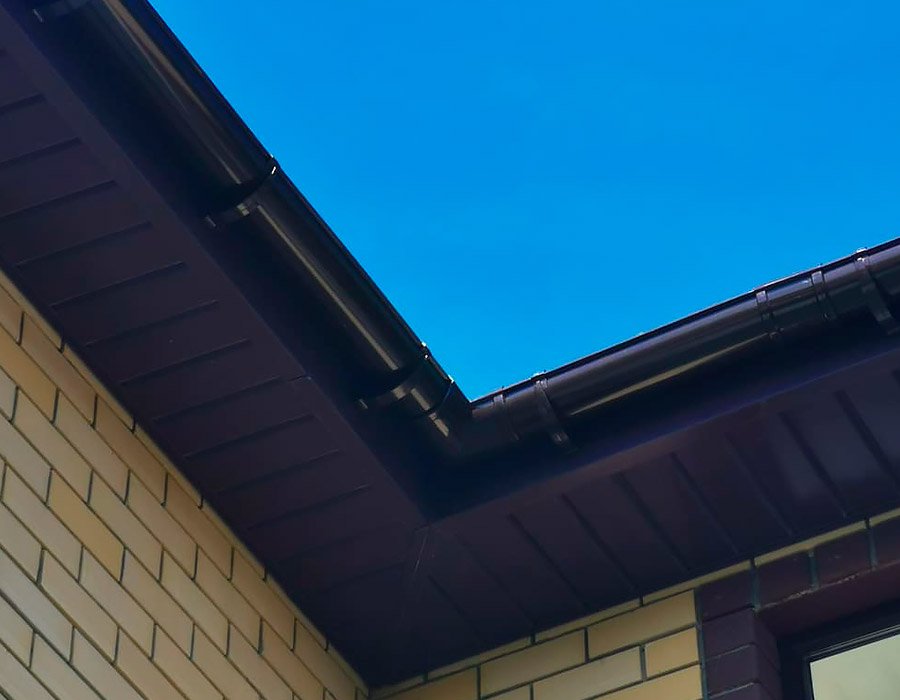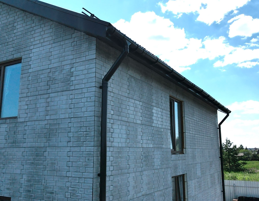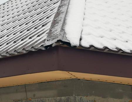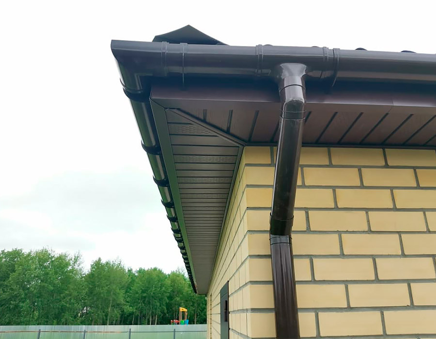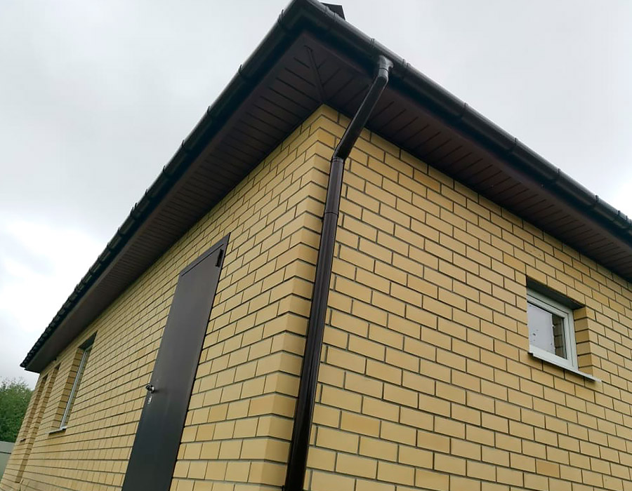 - Обязательный подшив свесов, монтаж водостока, снегозадержателей, дымохода;