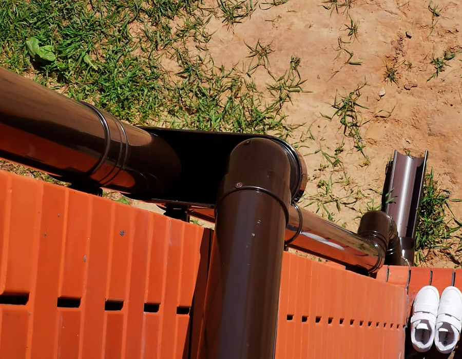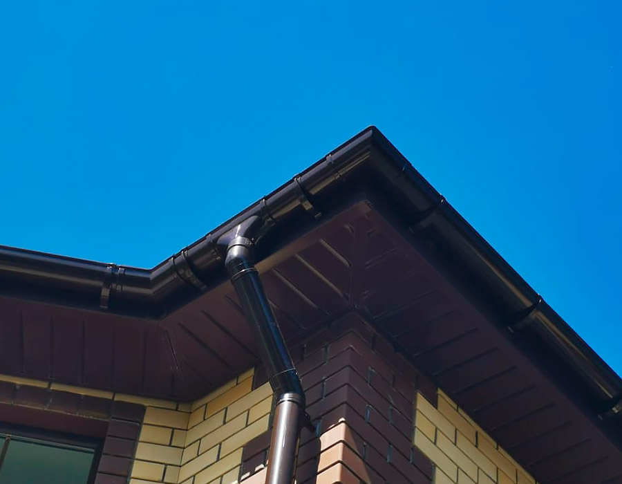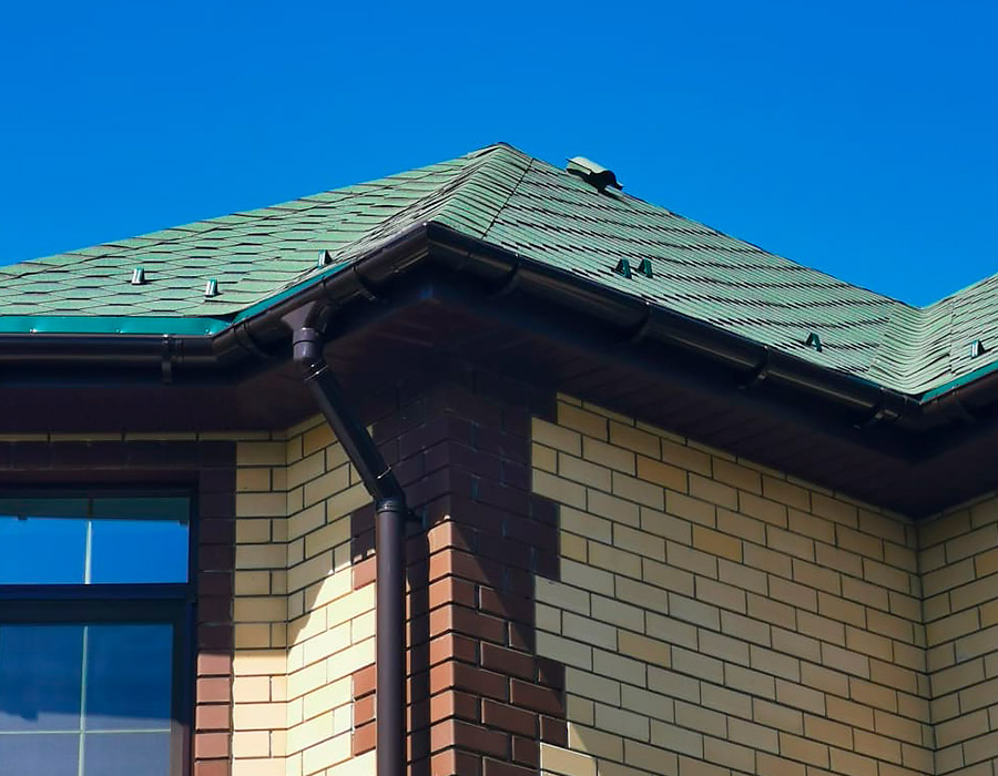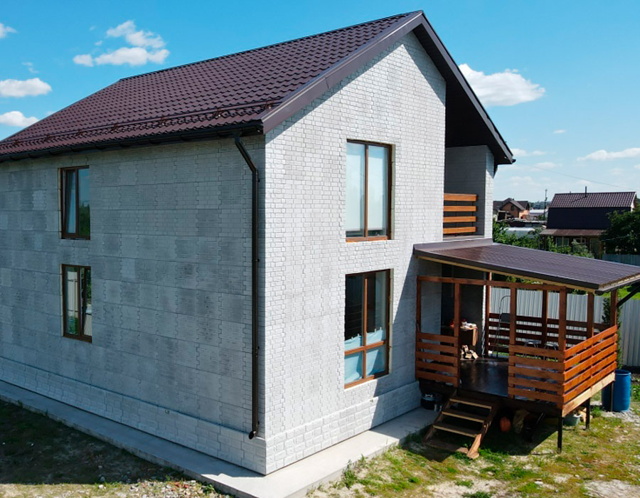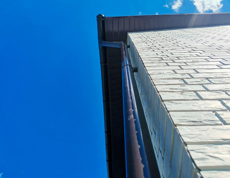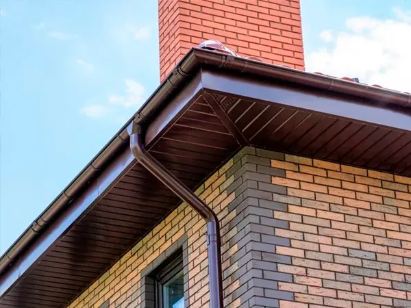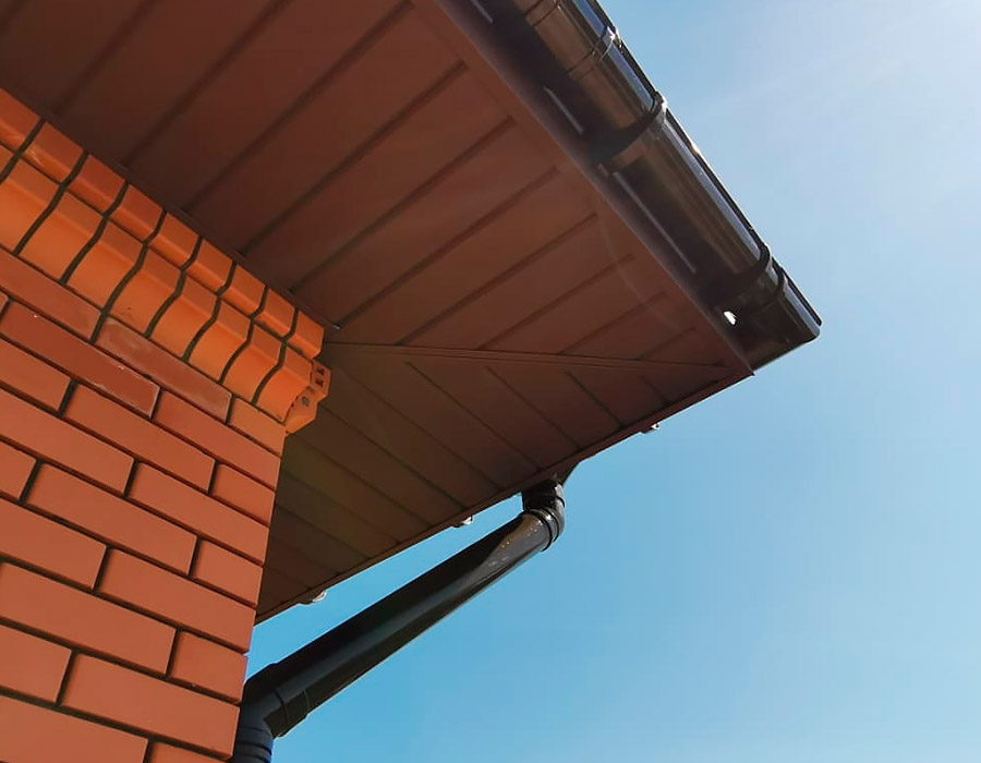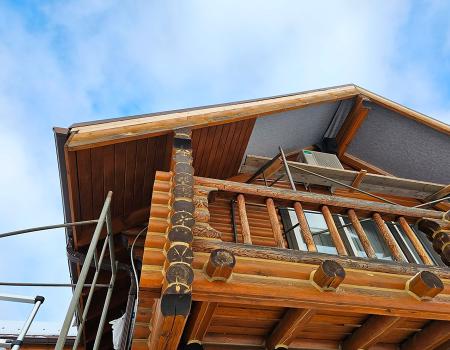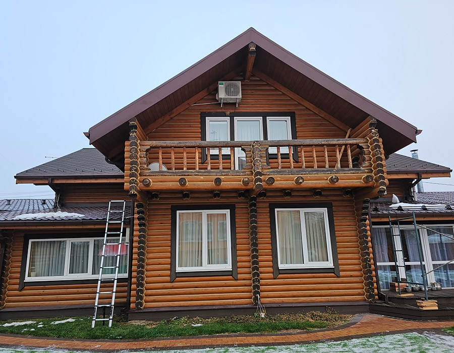 - Обязательный подшив свесов, монтаж водостока, снегозадержателей, дымохода;